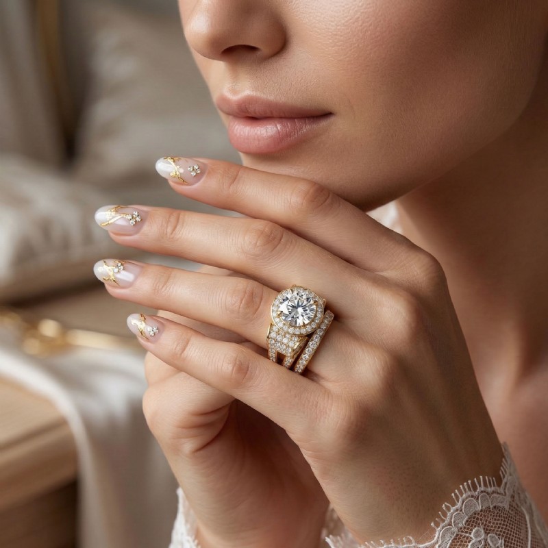 - Side stone carat weights are approximate