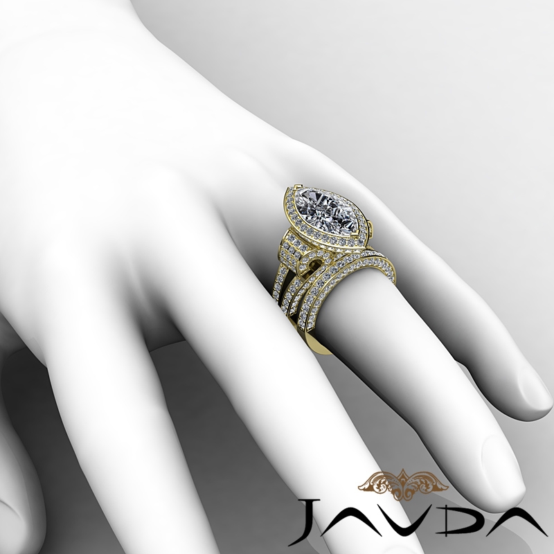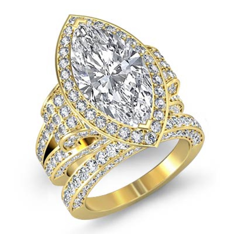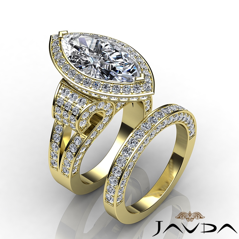 4Ct Diamond Engagement Ring Marquise Bridal Sets 18k Yellow Gold Halo Setting.