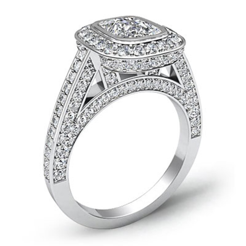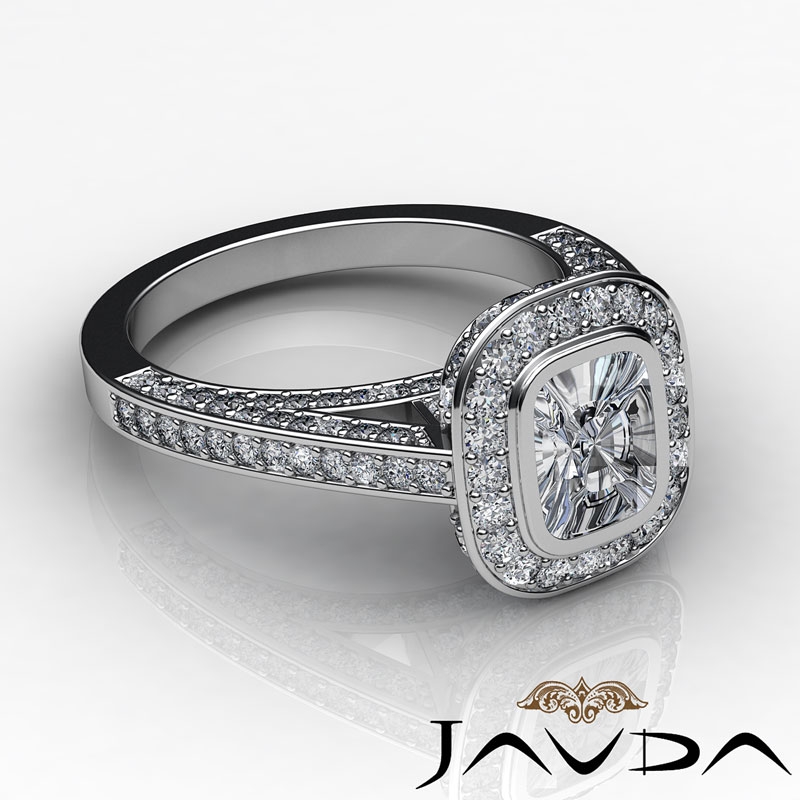 1.65Ct Pave Setting Diamond Engagement Cushion Semi Mount Ring 18k White Gold.