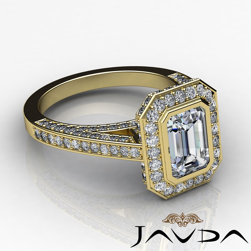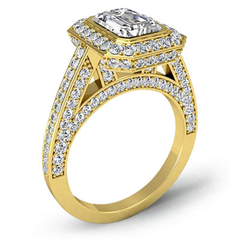 1.65Ct Halo Setting Diamond Engagement Emerald Semi Mount Ring 18k Yellow Gold.