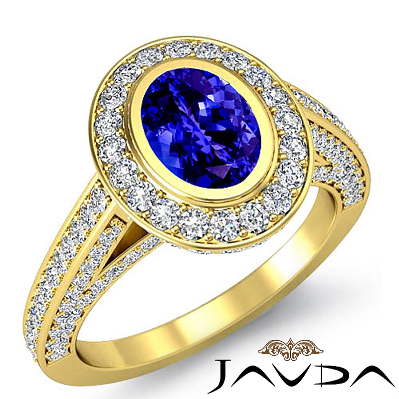 style Engagement Ring, center is Oval shape D Block Tanzanite Report by , Color & clarity, Made in 18k Yellow Gold (2.65 ct. tw.)