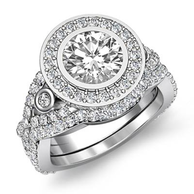 2.1Ct Round Diamond Engagement Halo Pave Setting Ring Bridal Set Platinum 950.