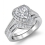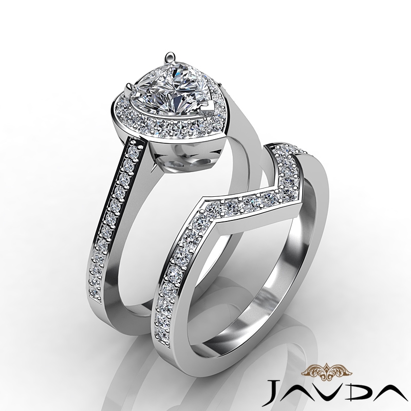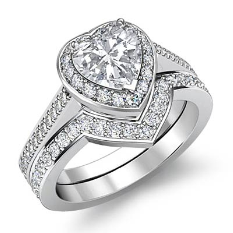 0.86Ct Diamond Pave Heart Bridal Sets Ring 18k White Gold Semi Mount.