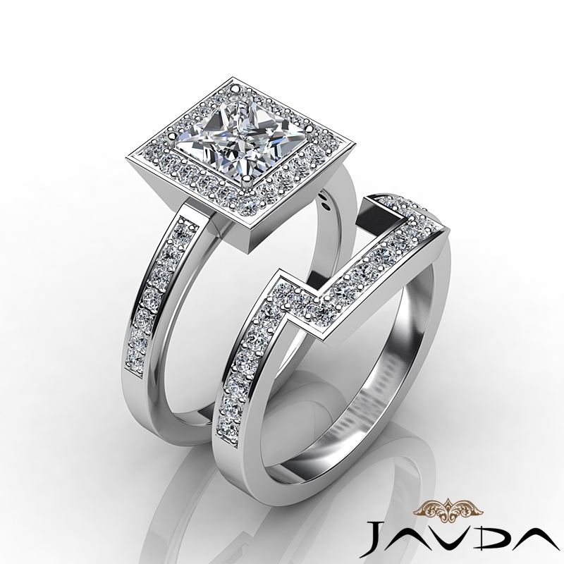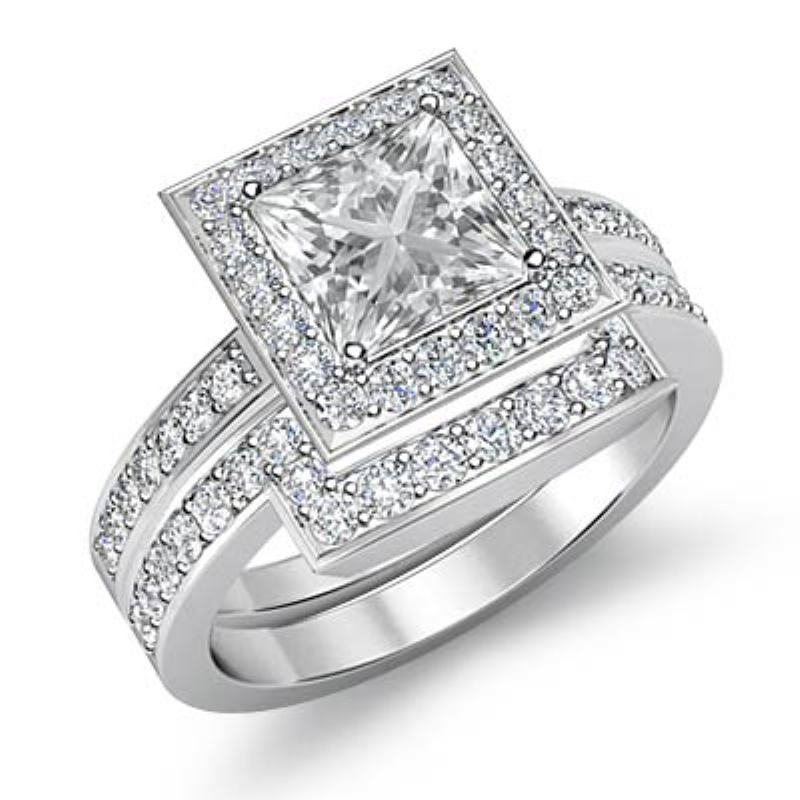 Diamond Engagement Ring Princess Bridal Set Platinum 950 Halo SemiMount 1.4Ct.