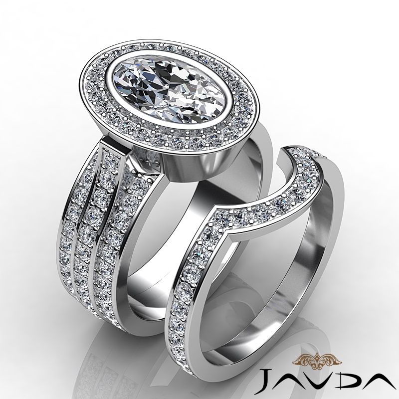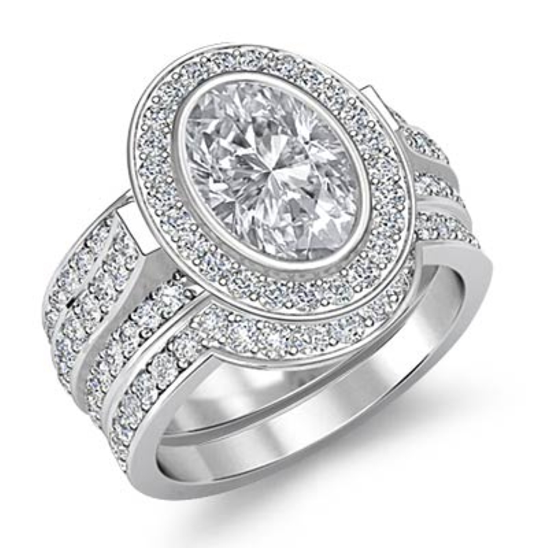 3 Row Bezel Halo Bridal Set style Engagement Ring, center is Oval shape Diamond Report by IGI, F Color & VS1 clarity, Made in 18k White Gold (3.3 ct. tw.)