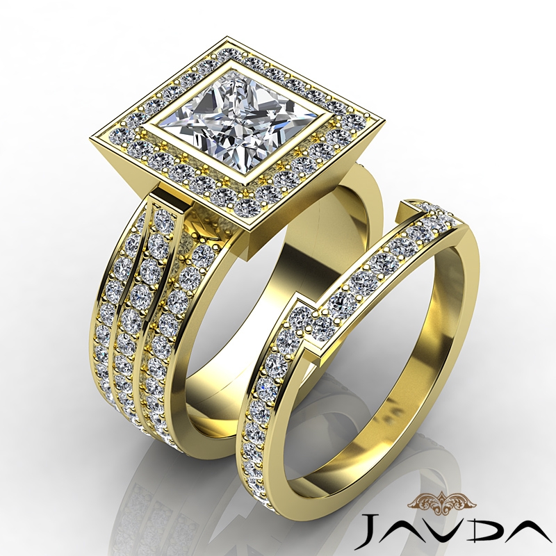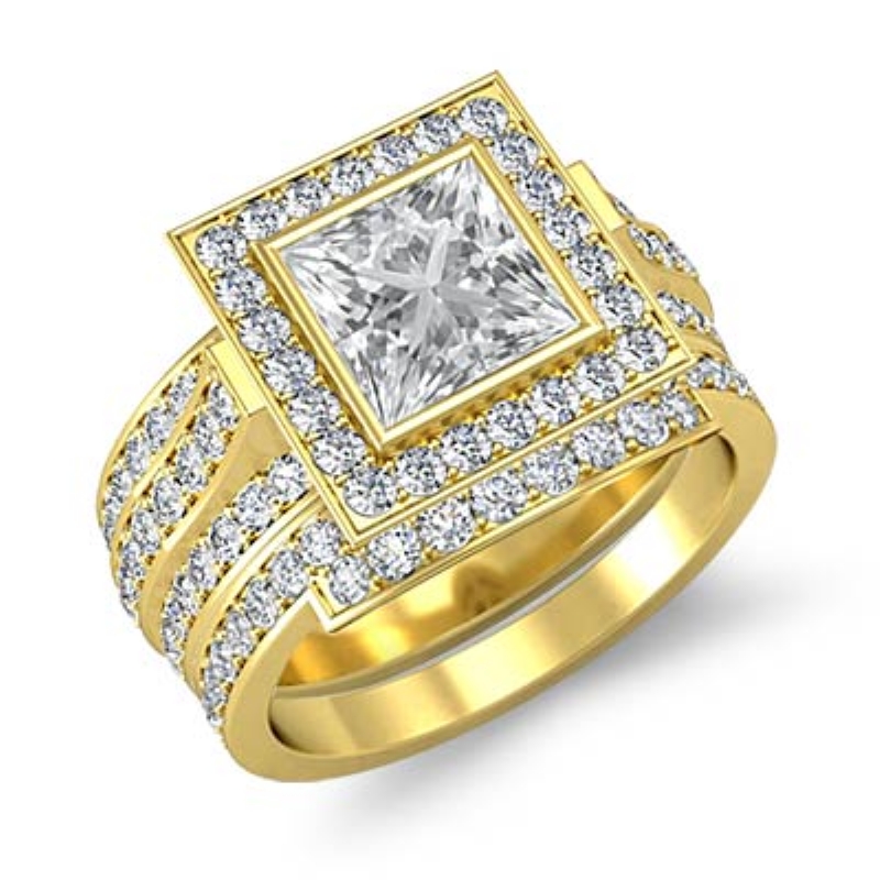 2.3Ct Diamond Engagement Pave Ring Bridal Sets 18k Yellow Gold Princess Setting.