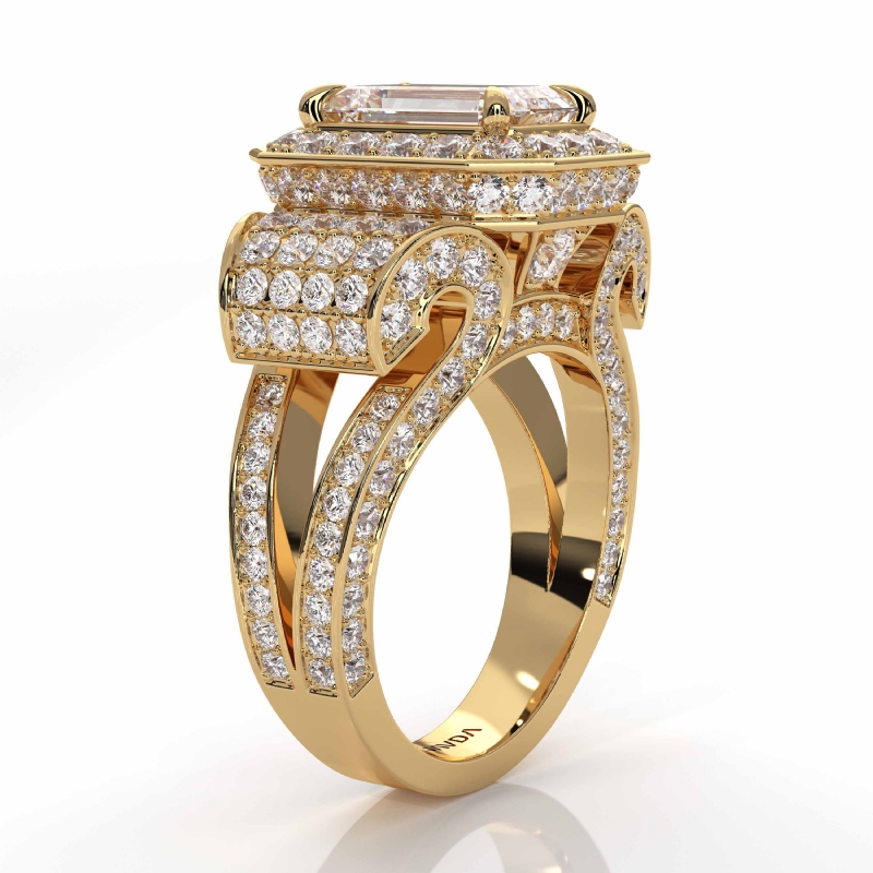 style Engagement Ring, center is Emerald shape Diamond Report by IGI, D Color & VS1 clarity, Made in 14k Yellow Gold (3.4 ct. tw.)