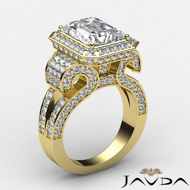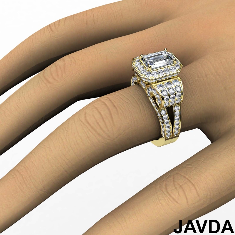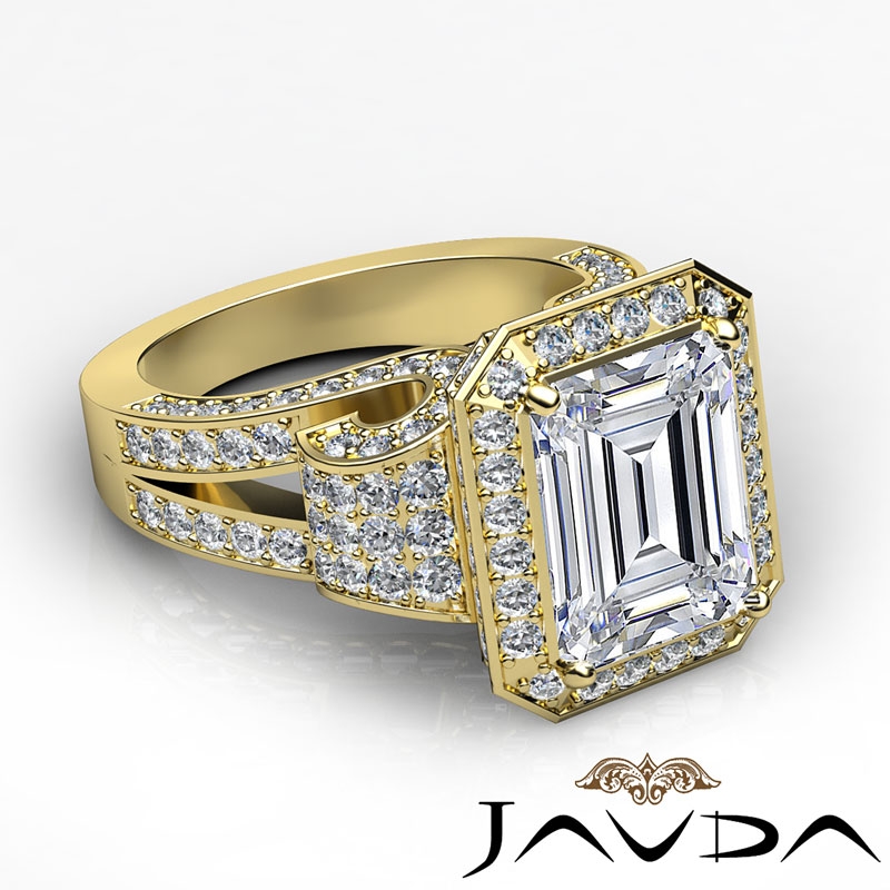 Emerald Diamond Vintage Semi Mount Engagement Ring 14k Yellow Gold Halo 2.7Ct.