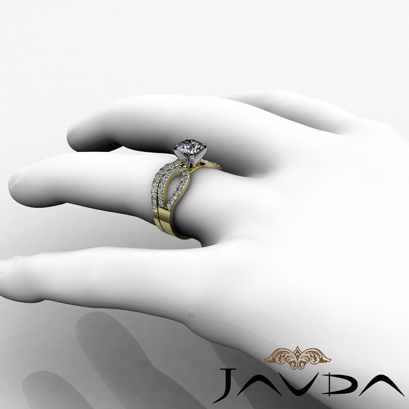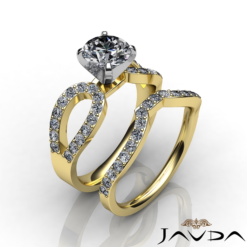 0.9Ct Diamond Engagement Ring Round Bridal Set 14k Yellow Gold Split Curve Shank - javda.com
