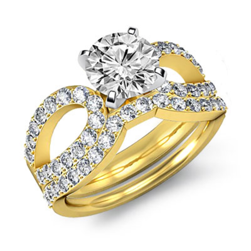 Split Curve Shank Bridal Set style Engagement Ring, center is Round shape Diamond Report by IGI, F Color & VVS2 clarity, Made in 14k Yellow Gold (2.05 ct. tw.)
