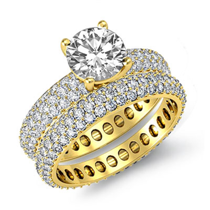 3.8Ct Round Shape Diamond Eternity Engagement Ring Bridal Setting 14k Yellow Gold - javda.com
