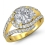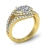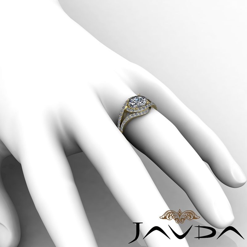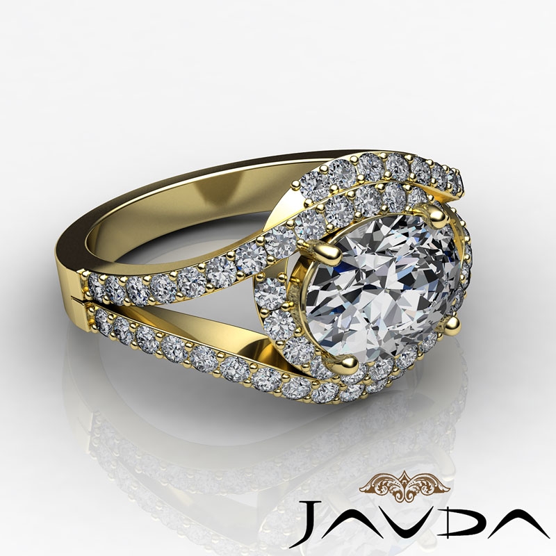 Halo Pave Set Curve Shank style Engagement Ring, center is Oval shape Diamond Report by IGI, F Color & VS1 clarity, Made in 18k Yellow Gold (1.63 ct. tw.)
