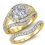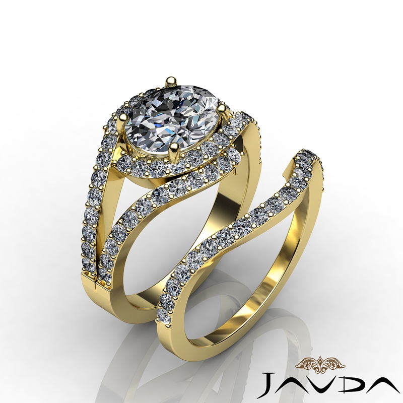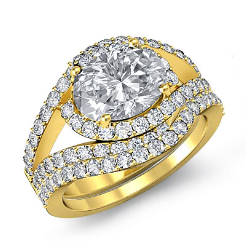 Halo Bypass Style Bridal Set style Engagement Ring, center is Oval shape Diamond Report by GIA, F Color & SI2 clarity, Made in 14k Yellow Gold (2.1 ct. tw.)