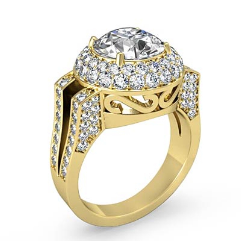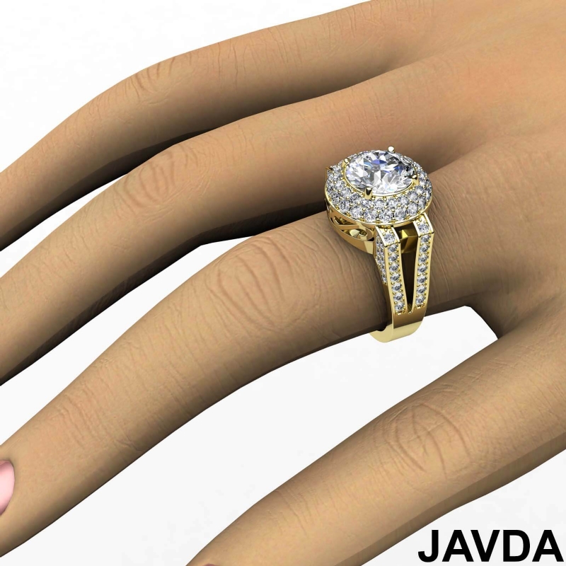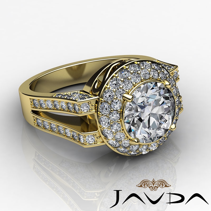Diamond Engagement Round Ring 18k Yellow Gold Halo Semi Mount 1.1Ct - javda.com