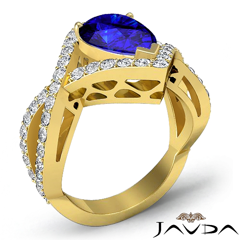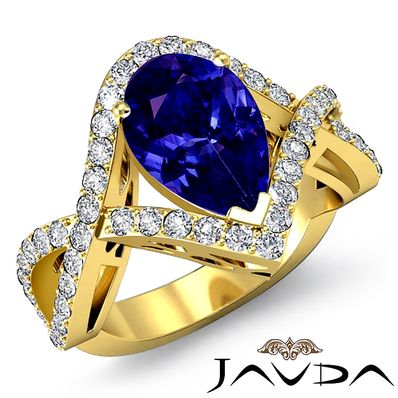 Cross Shank Pave Filigree style Engagement Ring, center is Pear shape D Block Tanzanite Report by , Color & clarity, Made in 14k Yellow Gold (1.74 ct. tw.)