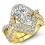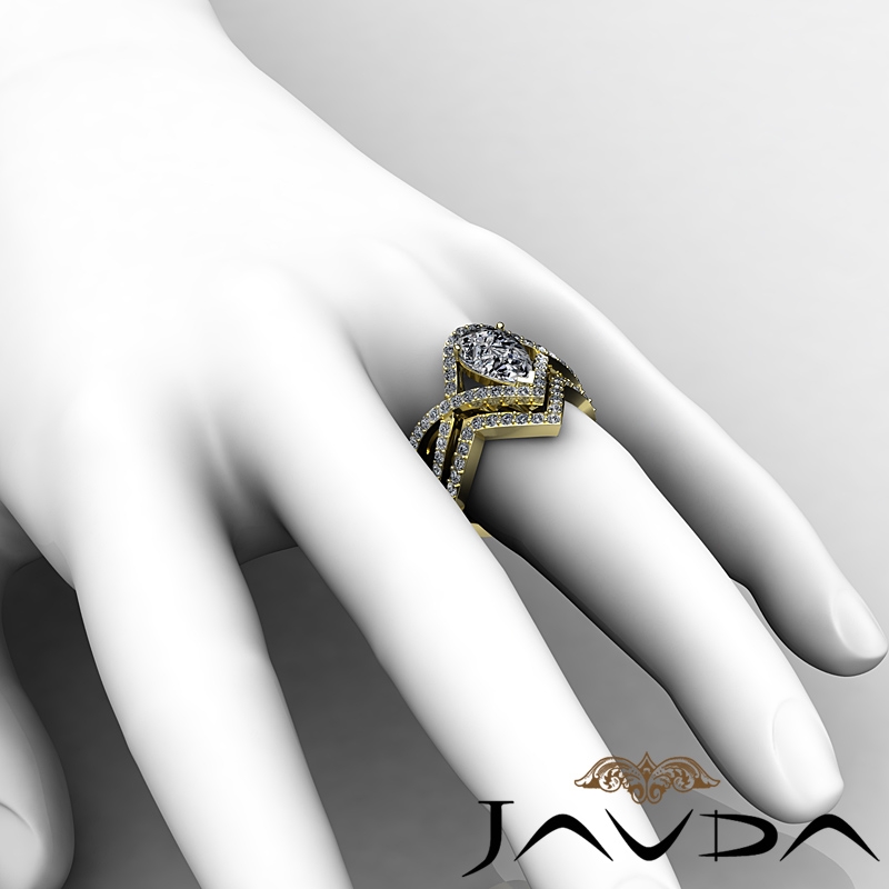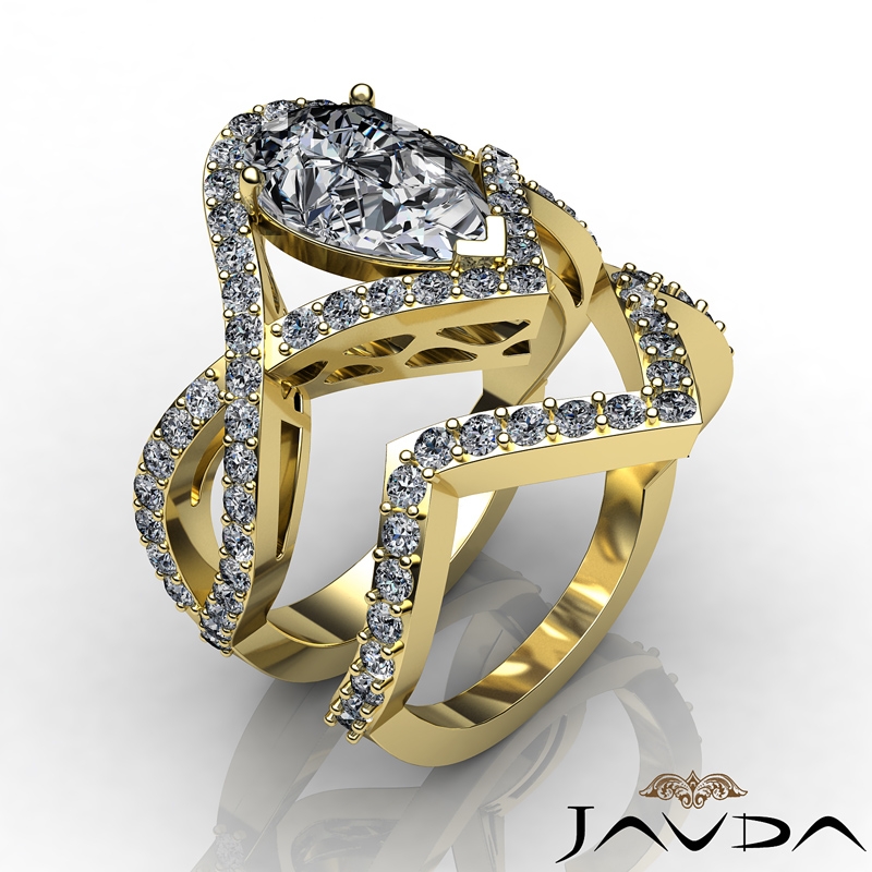 Cross Shank Pave Bridal Set style Engagement Ring, center is Pear shape Diamond Report by GIA, I Color & SI2 clarity, Made in 14k Yellow Gold (2.31 ct. tw.)