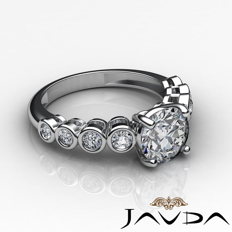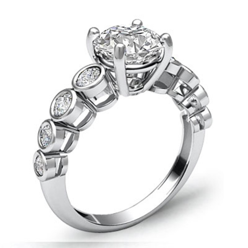 Classic Sidestone Bezel Set style Engagement Ring, center is Round shape Diamond Report by GIA, H Color & SI1 clarity, Made in Platinum 950 (1.12 ct. tw.)