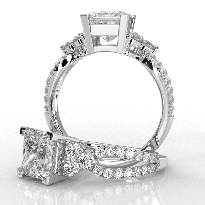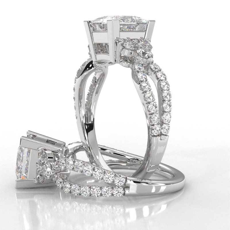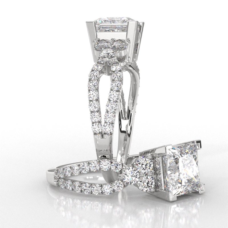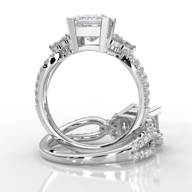 style Engagement Ring, center is Princess shape Diamond Report by IGI, E Color & VS1 clarity, Made in Platinum 950 (5.36 ct. tw.)