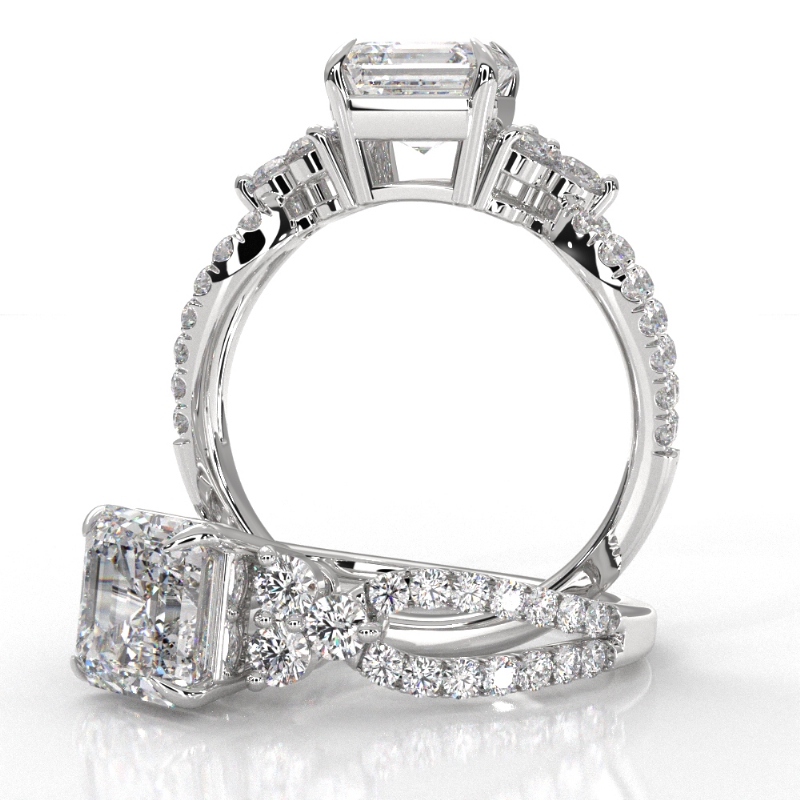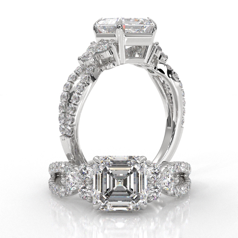 style Engagement Ring, center is Asscher shape Diamond Report by IGI, D Color & VS1 clarity, Made in Platinum 950 (4.88 ct. tw.)