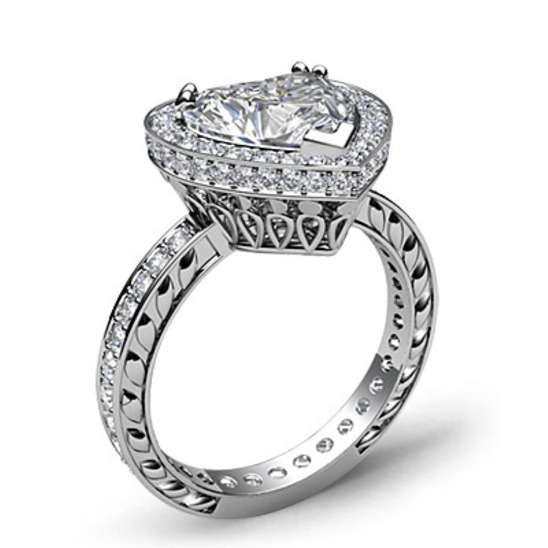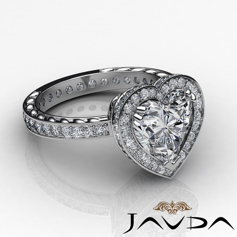 Heart Cut Halo Pave Diamond Engagement Semi Mount Ring in Platinum 950 1Ct.