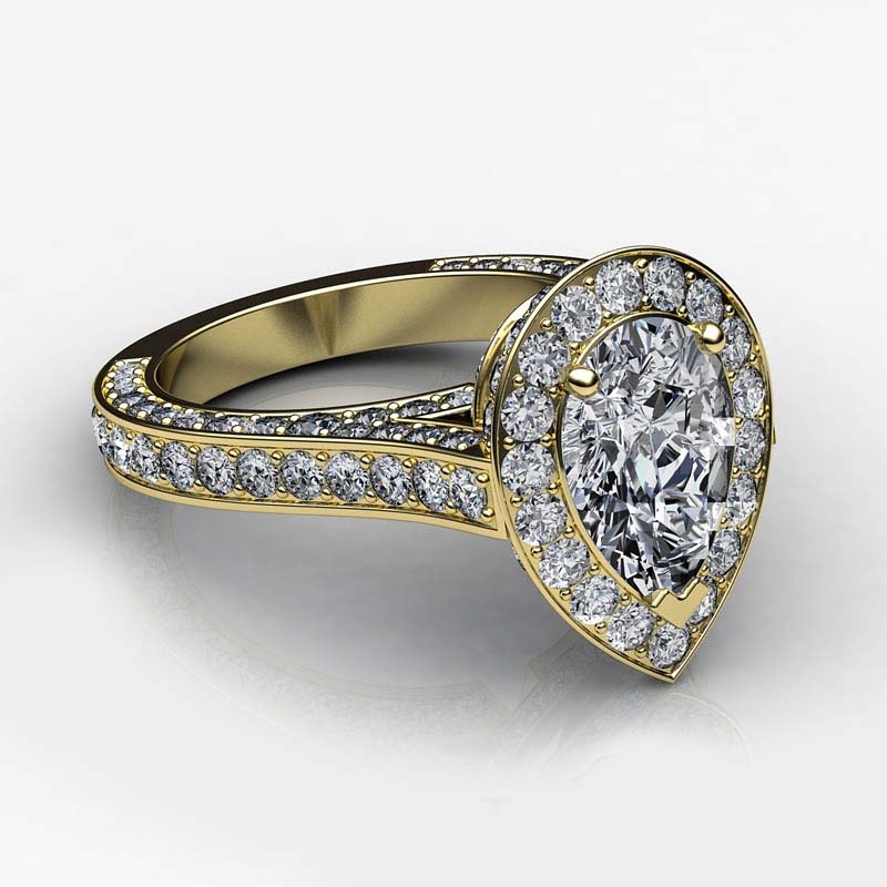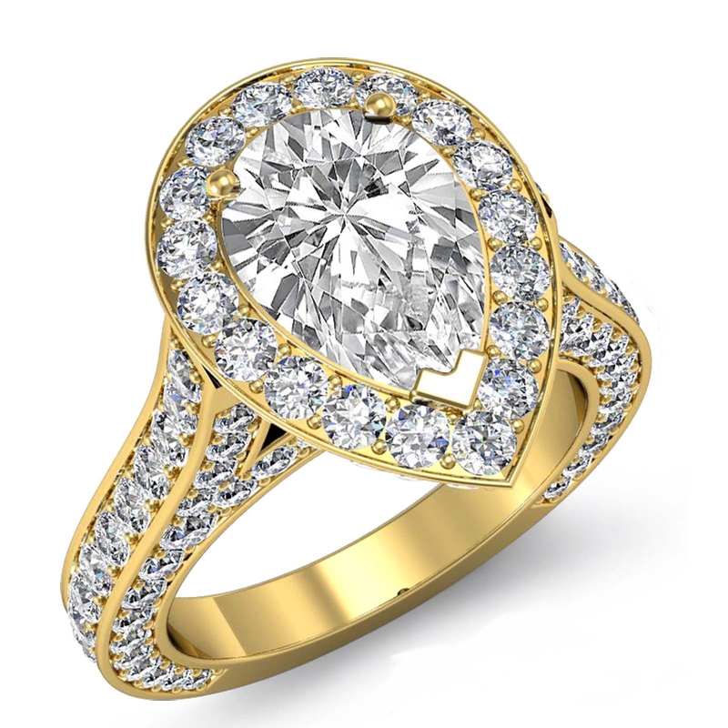 Pear Semi Mount Halo Pave Setting Diamond Engagement Ring 18k Yellow Gold 2.1Ct.