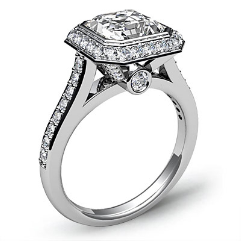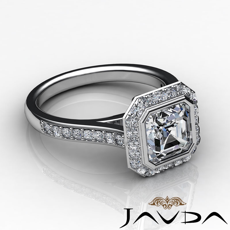 Halo Pave Bezel Sidestone style Engagement Ring, center is Asscher shape Diamond Report by IGI, D Color & VS1 clarity, Made in 18k White Gold (2.29 ct. tw.)