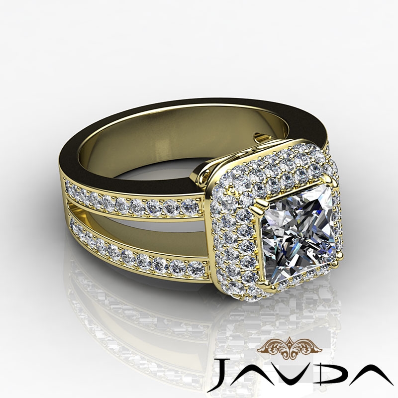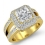 1.25Ct Halo Diamond Engagement Princess Semi Mount Ring 14k Yellow Gold.