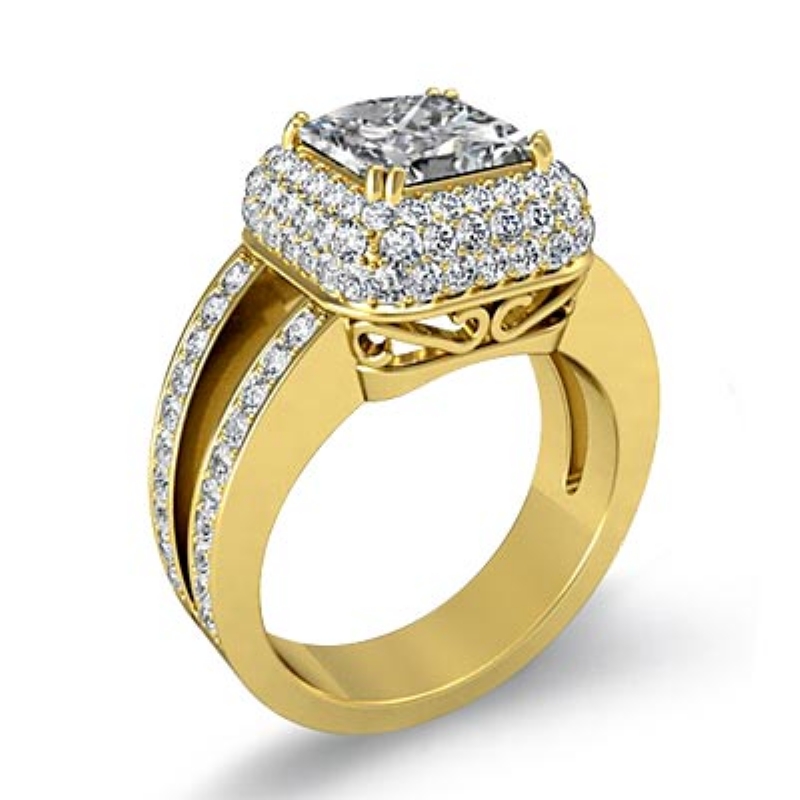 style Engagement Ring, center is Princess shape Diamond Report by GIA, J Color & VS1 clarity, Made in 14k Yellow Gold (2.29 ct. tw.)