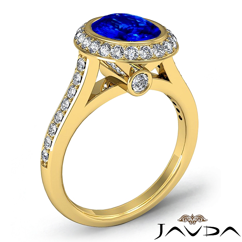 Halo Bezel Pave Setting style Engagement Ring, center is Oval shape D Block Tanzanite Report by , Color & clarity, Made in 14k Yellow Gold (1.8 ct. tw.)