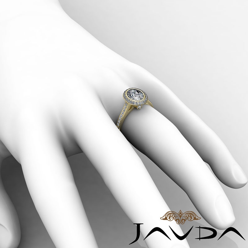 Diamond Engagement Ring 14k Yellow Gold Oval Semi Mount Halo Pave Setting 0.8Ct.