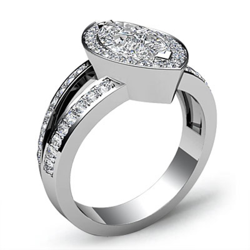 Halo Split-Shank Pave Set style Engagement Ring, center is Marquise shape Diamond Report by GIA, I Color & SI1 clarity, Made in 18k White Gold (1.5 ct. tw.)
