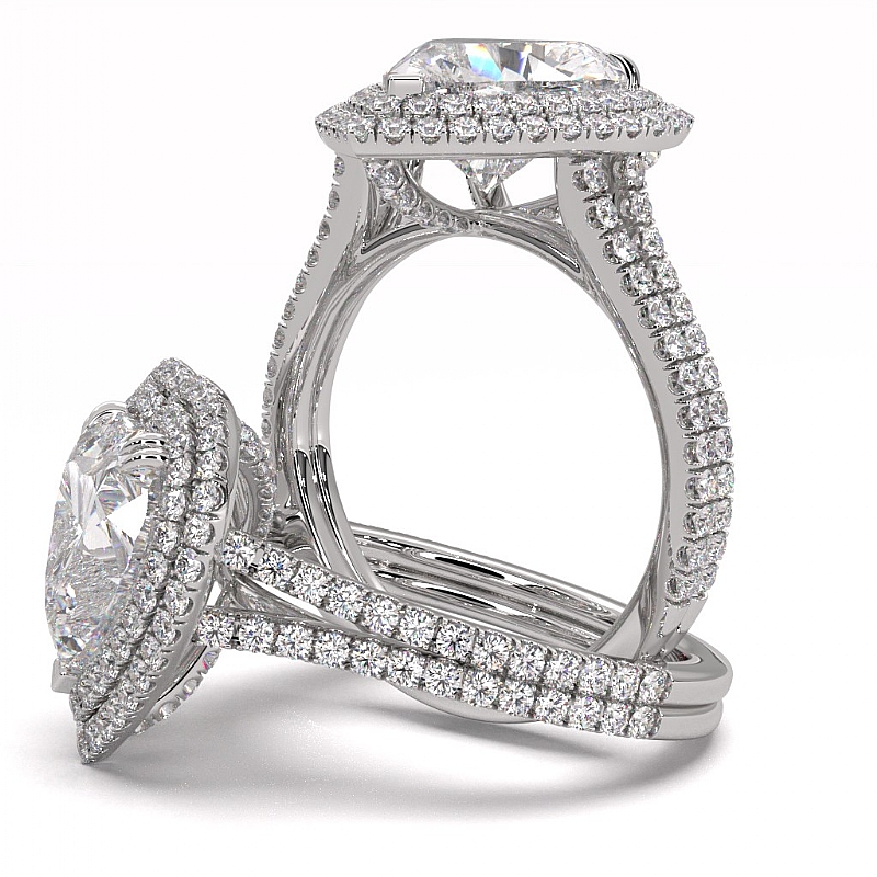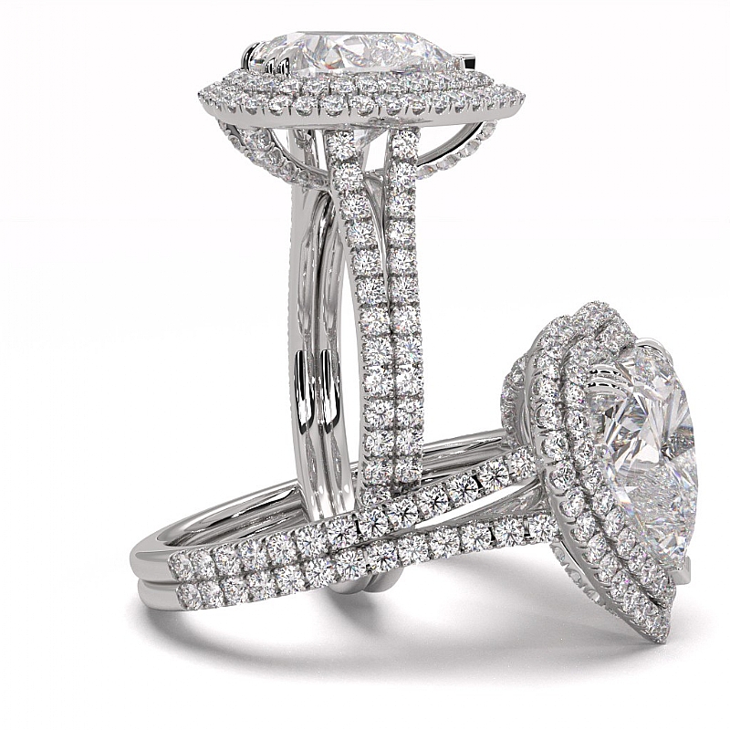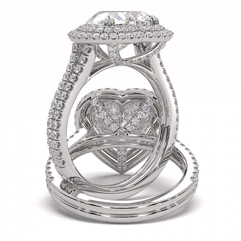 Diamond Engagement Halo Setting Ring Heart Cut Semi Mount 14k White Gold 1.55Ct.