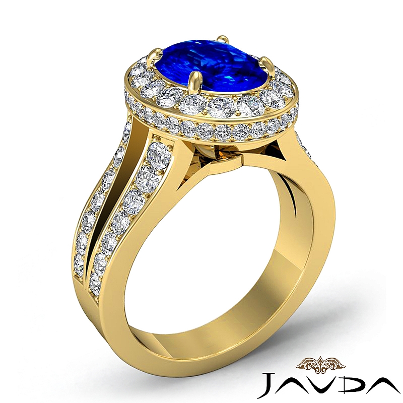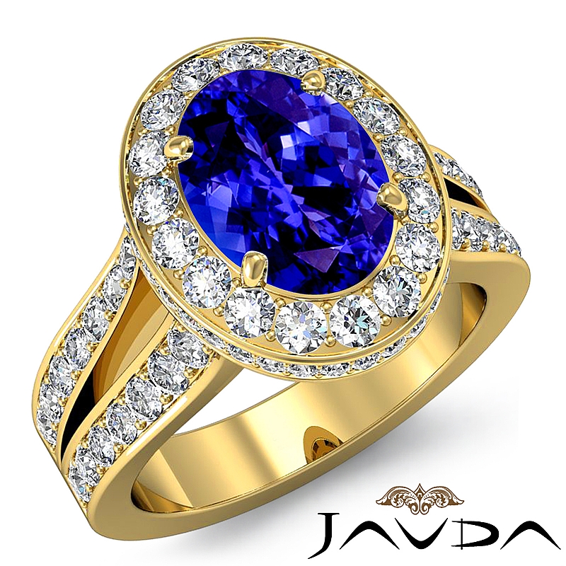 Luxury Women Halo Wedding style Engagement Ring, center is Oval shape D Block Tanzanite Report by , Color & clarity, Made in 18k Yellow Gold (2.3 ct. tw.)
