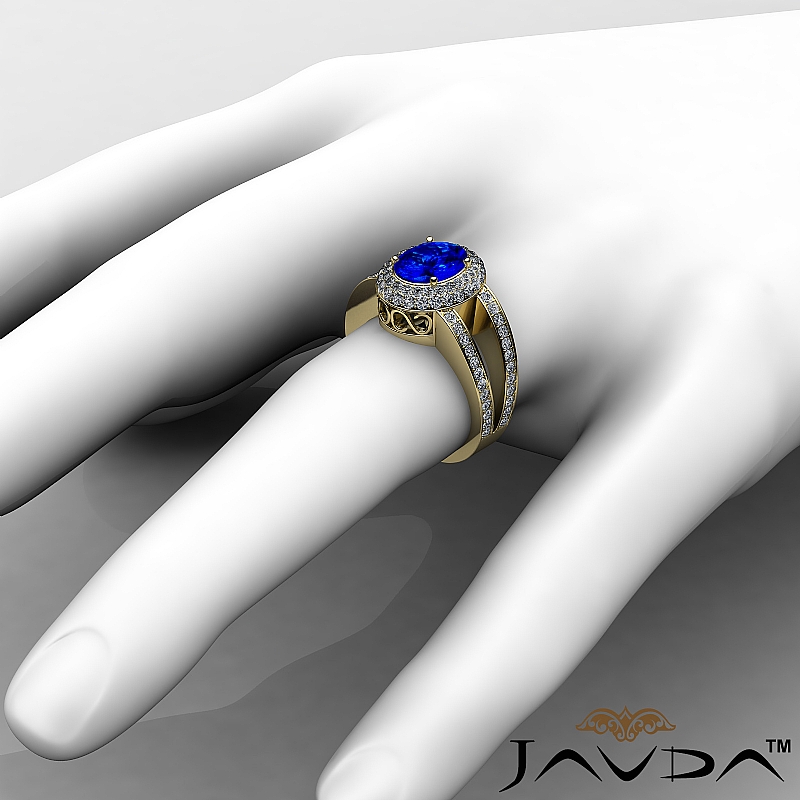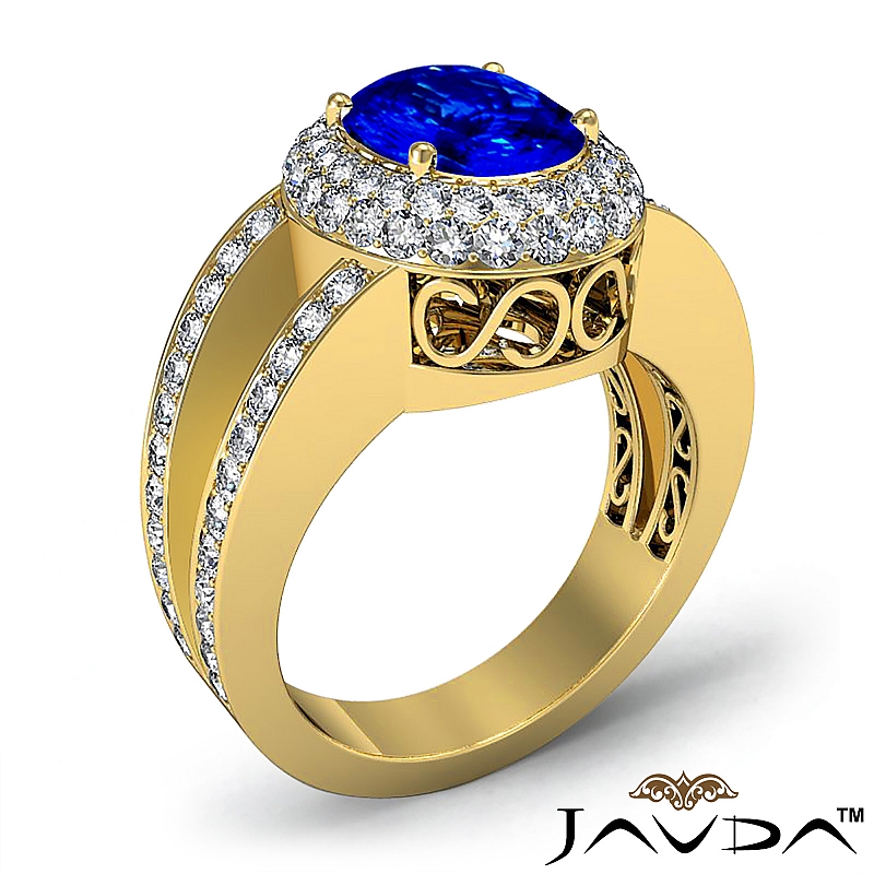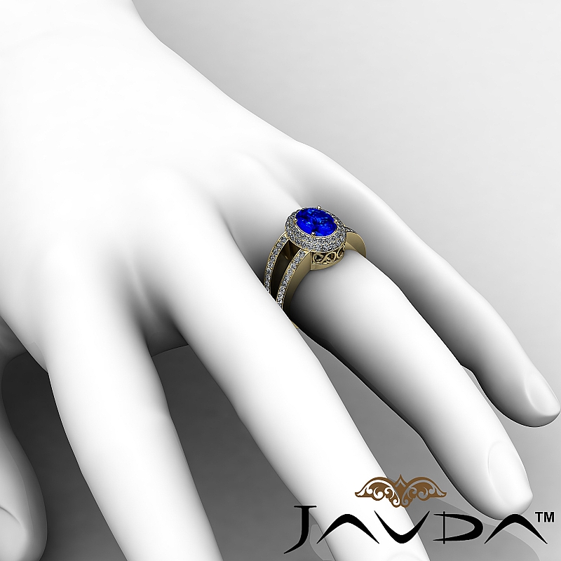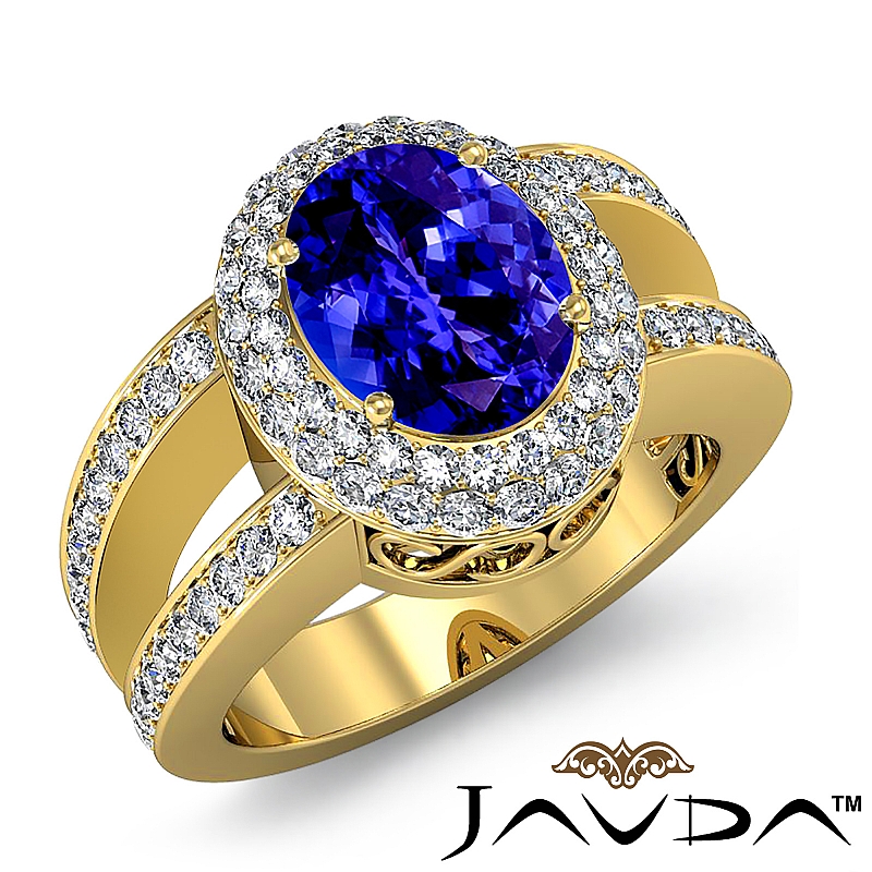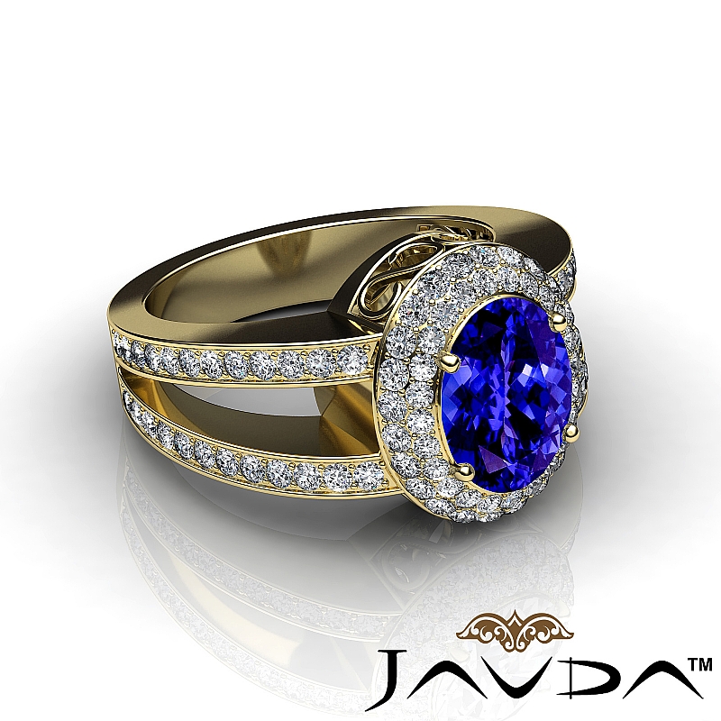 Glamorous Vintage Halo style Engagement Ring, center is Oval shape D Block Tanzanite Report by , Color & clarity, Made in 18k Yellow Gold (2.35 ct. tw.)