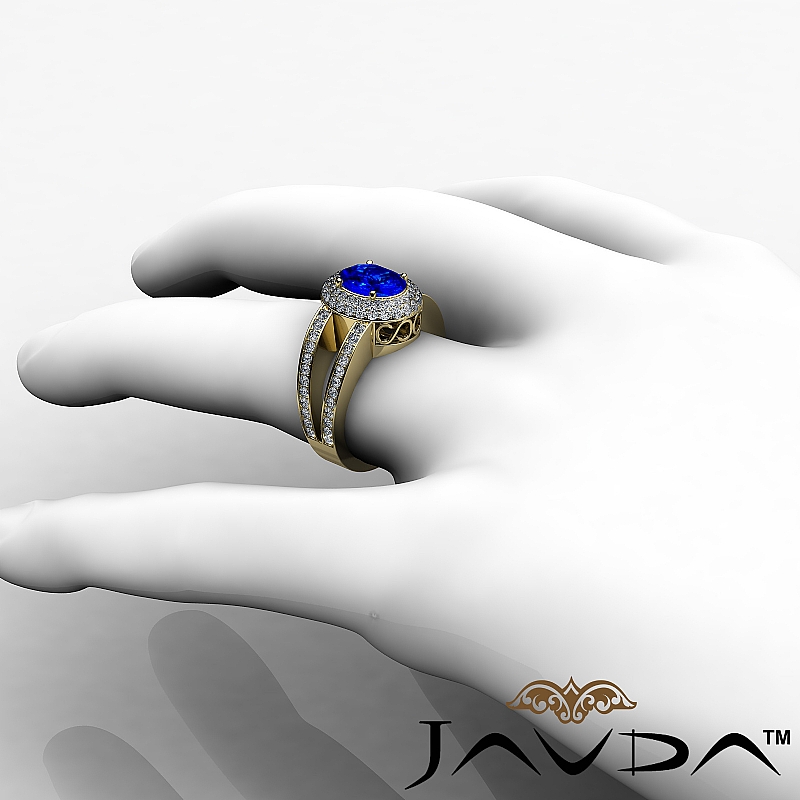 Diamond Engagement Ring 18k Yellow Gold Oval Semi Mount Halo Pave Setting 1.35Ct.
