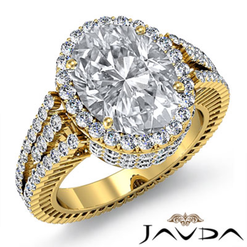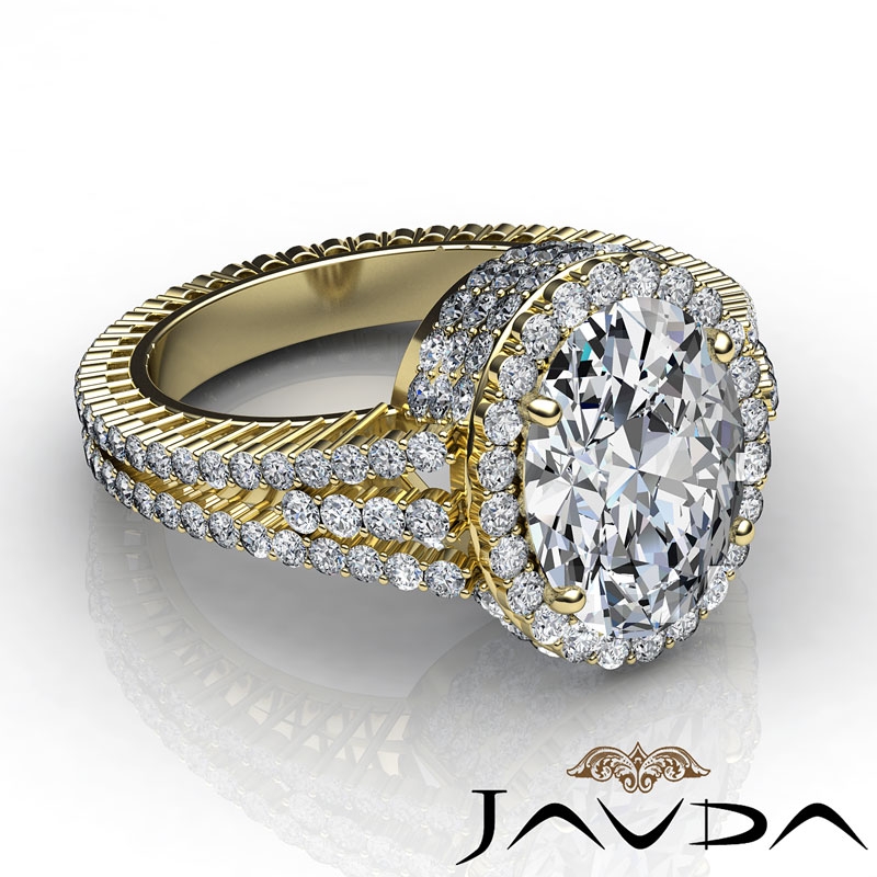 Diamond Engagement Ring Oval Semi Mount 18k Yellow Gold Halo Pave Setting 2.5Ct.