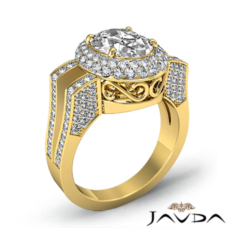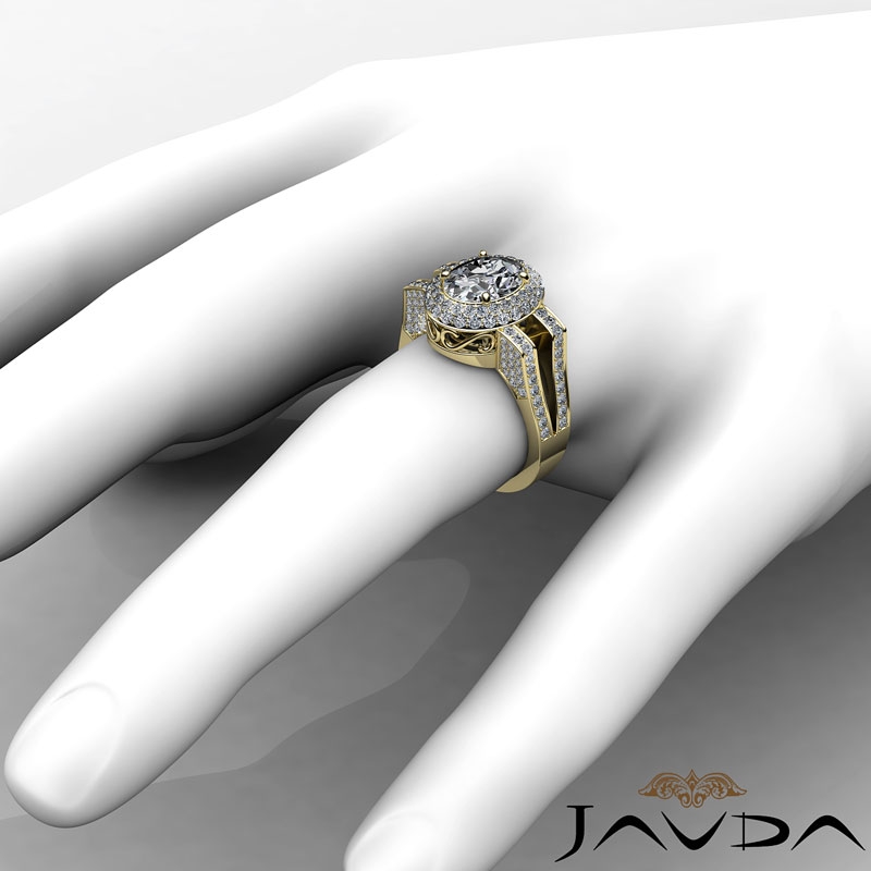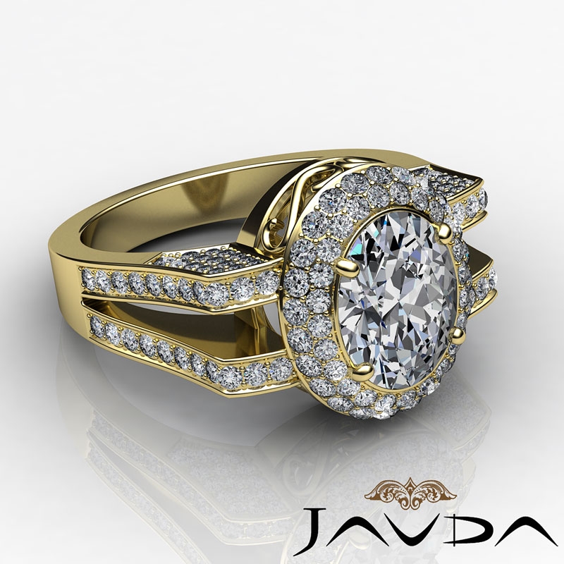 Diamond Engagement Oval Ring 14k Yellow Gold Halo Pave Setting Semi Mount 1.1Ct.