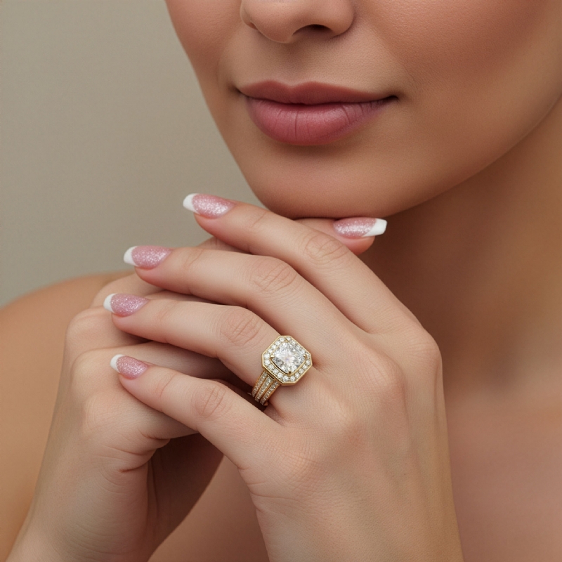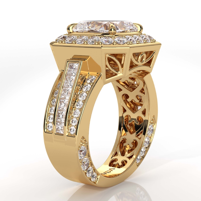 style Engagement Ring, center is Cushion shape Diamond Report by IGI, D Color & VS1 clarity, Made in 14k Yellow Gold (5.66 ct. tw.)
