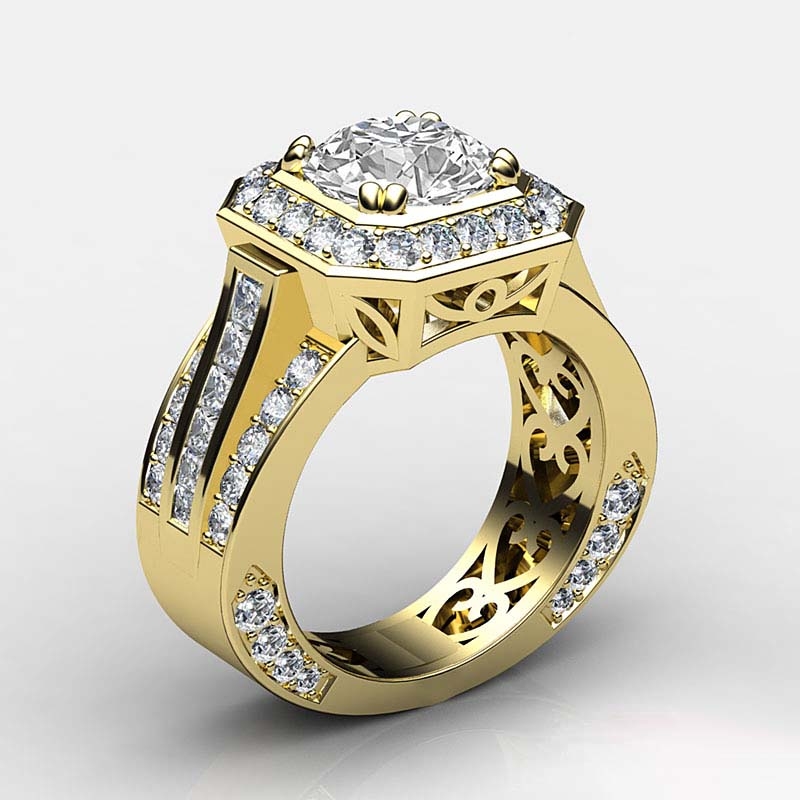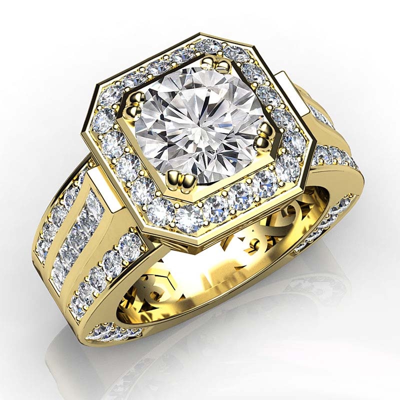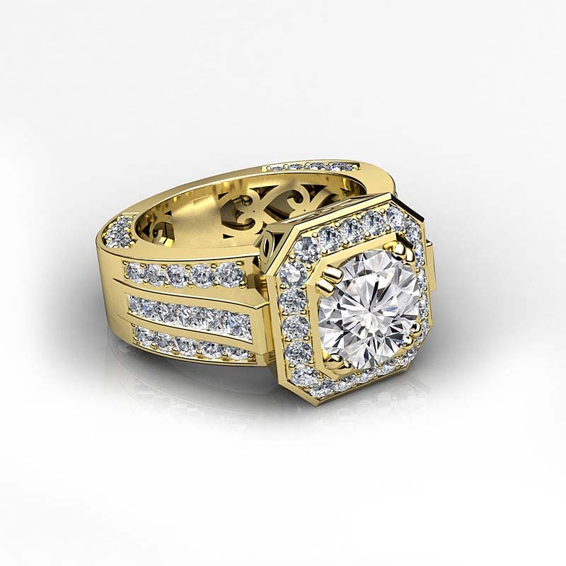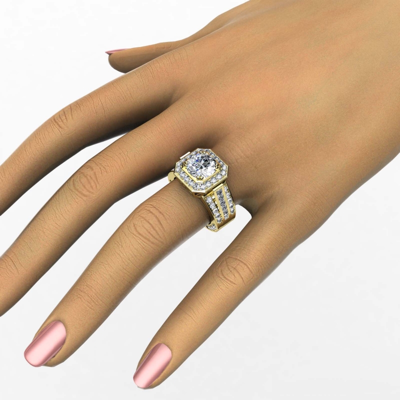 style Engagement Ring, center is Round shape Diamond Report by IGI, D Color & VS1 clarity, Made in 18k Yellow Gold (3.04 ct. tw.)
