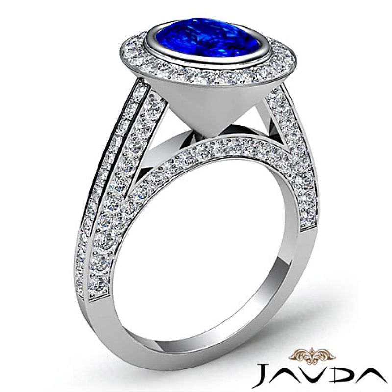 Halo Pave Bezel Setting style Engagement Ring, center is Oval shape D Block Tanzanite Report by , Color & clarity, Made in 18k White Gold (2.7 ct. tw.)