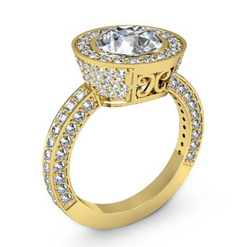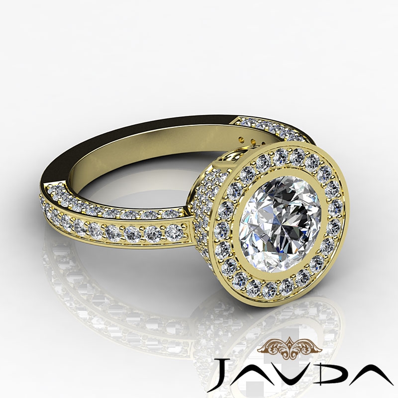 Round Diamond Engagement Bezel Halo Semi Mount Ring 14k Yellow Gold 1.5Ct.