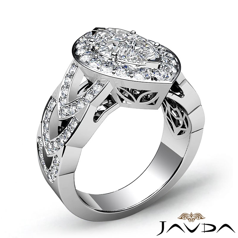 Designer Shank Halo Pave style Engagement Ring, center is Marquise shape Diamond Report by GIA, F Color & VVS2 clarity, Made in 18k White Gold (2.25 ct. tw.)