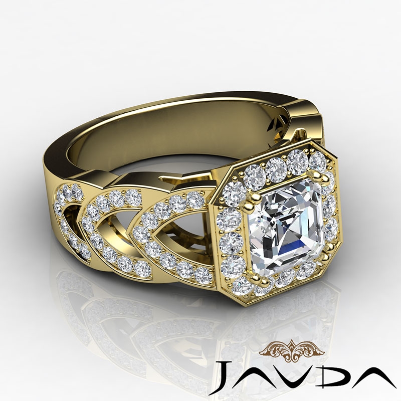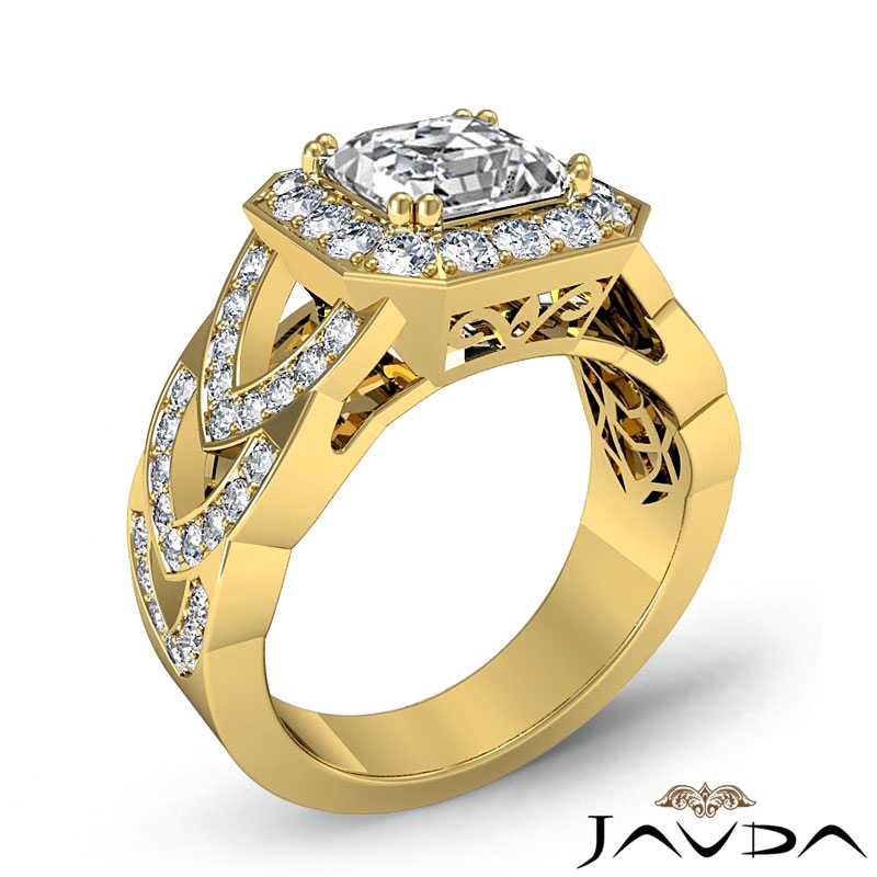 Designer Shank Halo Pave style Engagement Ring, center is Asscher shape Diamond Report by IGI, D Color & VS1 clarity, Made in 18k Yellow Gold (2.33 ct. tw.)