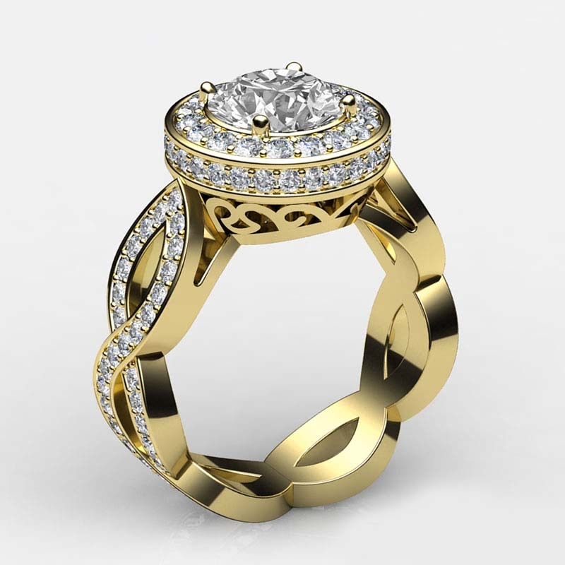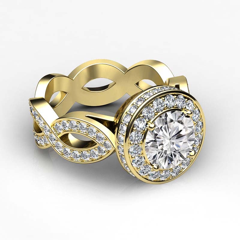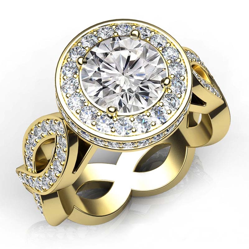 Round Cut Diamond Engagement Ring Pave Setting 14k Yellow Gold Wedding Band 1.3Ct.