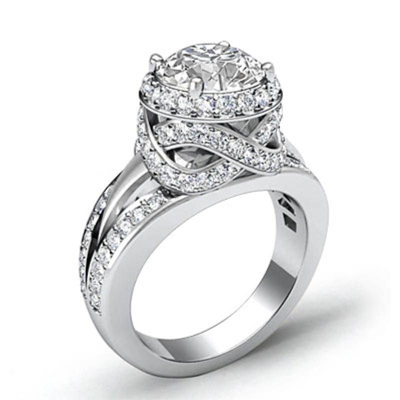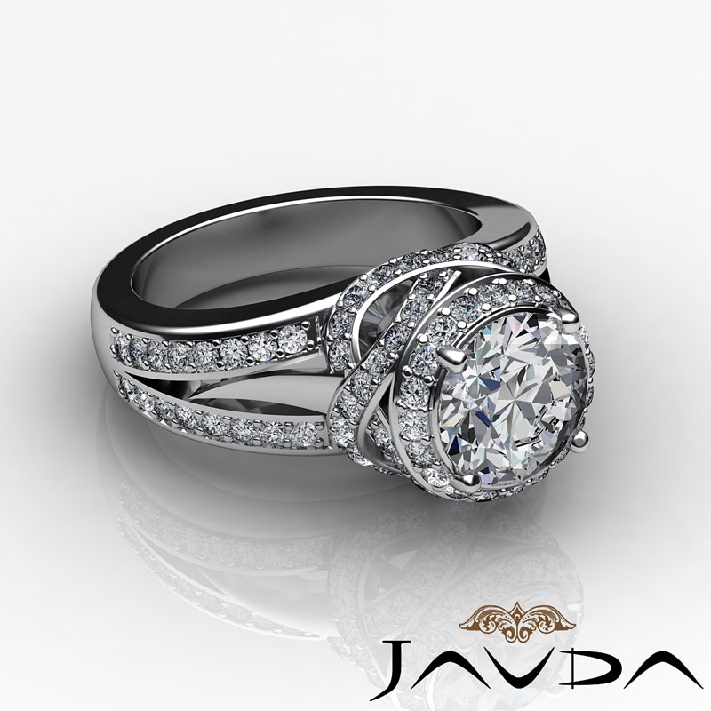 1.3Ct Diamond Engagement Halo Ring Round Semi Mount Platinum 950.