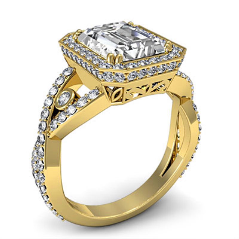 style Engagement Ring, center is Emerald shape Diamond Report by GIA, E Color & VS1 clarity, Made in 18k Yellow Gold (2.27 ct. tw.)