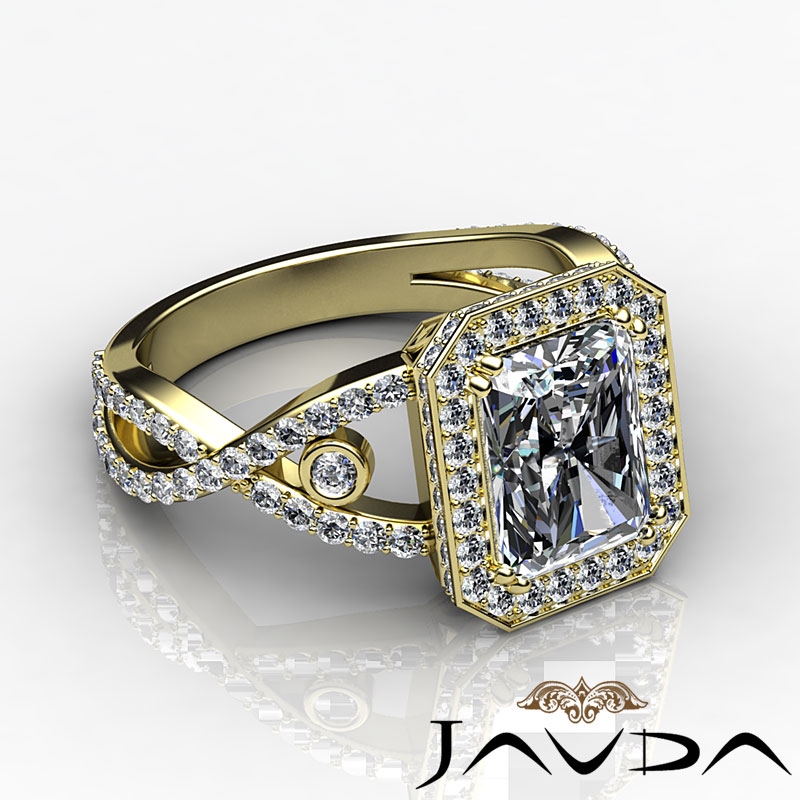 1.5Ct Diamond Engagement Ring Radiant Semi Mount 18k Yellow Gold Halo.