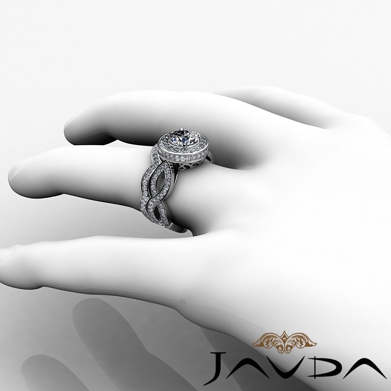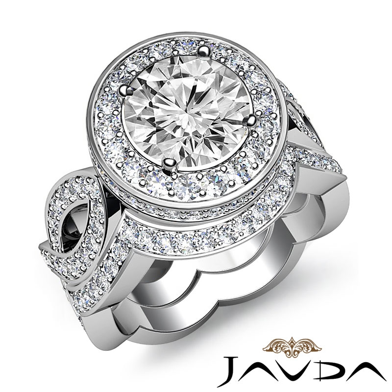 Infinity Shank Halo Bridal Set style Engagement Ring, center is Round shape Diamond Report by GIA, I Color & VS2 clarity, Made in Platinum 950 (2.8 ct. tw.)