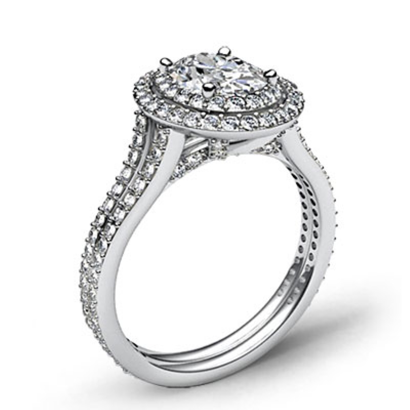 1.55Ct Round Diamond Engagement Ring Semi Mount Halo Platinum 950.
