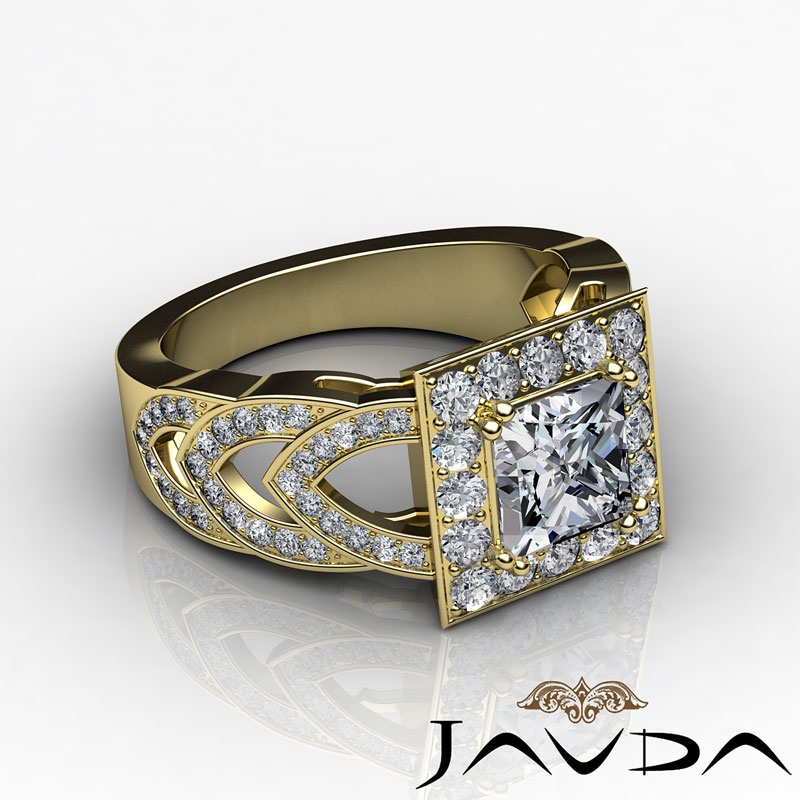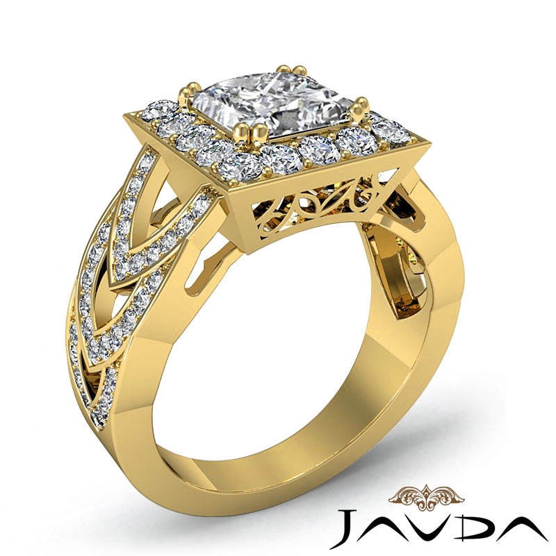 Diamond Engagement Ring Halo Pave Setting Princess Semi Mount 18k Yellow Gold 1.25Ct.